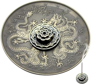 Support d'Encens Porte d'Encens Plaque Titulaire Vintage d'Encens Brûleur Couverture Bronze Chinois Dragon Phoenix Tibétain Plaque d'Encens Vintage FengShui Décoration (Bronze)