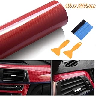 6D Film Autocollant Étanche de Voiture 40 x 300CM Film Autocollant Fibre de Carbone de Vinyle DIY Décoration pour Voiture,Ordinateur,Moto, Les Meubles, Smartphone (Rouge)