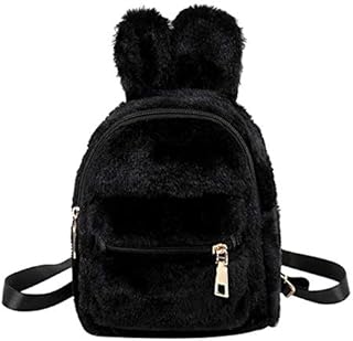Onemoret Fausse fourrure Mini oreilles de lapin enfants Sacs à dos Filles Enfants d'école Maternelle Bandoulière Mini Sacs à dos Sac à dos Noir