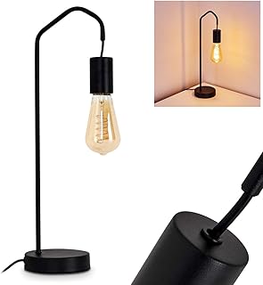 Briloner Leuchten - Lampe de table, lampe de table à 1 ampoule, lampe de chevet rétro, vintage, acier noir, 1x E27, maximum 60 Watt, interrupteur inclus, noire, 210x293 mm (DxH)