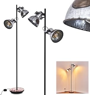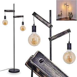 Lampadaire Holga en métal noir, gris effet rouille et aspect bois, luminaire rétro-industriel avec interrupteur sur le câble, idéal dans un salon vintage, 162 cm, pour 2 ampoules E27 max. 40 Watt