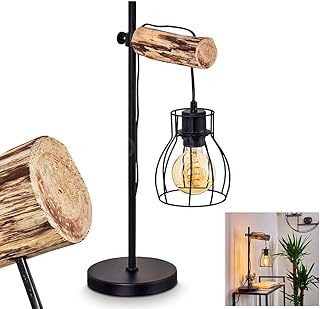 B.K.Licht lampe de table, design rétro industriel, bois & métal, éclairage salon & chambre, lampe de chevet, douille E27, pour ampoule LED 10W max, noir