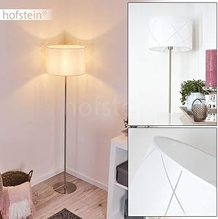 Lampadaire Opatija en métal nickel-mat et tissus blanc avec motifs géométriques, Ø 38cm, luminaire rétro idéal dans un salon vintage, avec interrupteur sur le câble, pour 1 ampoule E27 max. 60 Watt