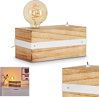 Lampe de table Torrevieja en bois et métal blanc, lampe de bureau rétro-industrielle avec interrupteur intégré, idéale dans un salon vintage, pour 1 ampoule E27 max. 30 Watt, compatible LED