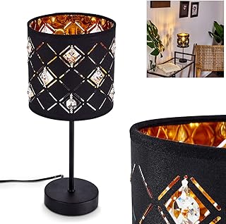 Lampe de table Bathinda noir et or, élégante lampe de bureau vintage, idéal pour une table de nuit, interrupteur on/off sur le câble, pour 1 ampoule E14 max. 15 Watt, compatible ampoules LED